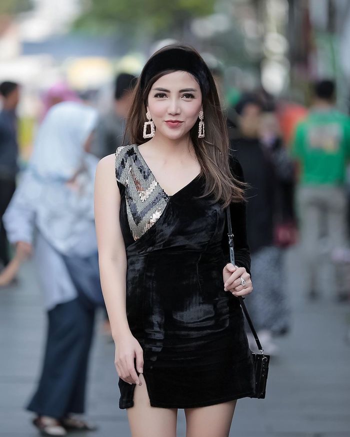 Perempuan yang dijuluki netizen Tante Pemersatu Bangsa tersebut mencuri perhatian lewat penampilannya mengenakan mini dress warna biru . Mini dress ketat berbahan katun tersebut membentuk lekuk tubuh, sehingga body goals Tante Ernie kian jelas terlihat . Sementara, soal riasan Tante Ernie tampak cantik dengan gaya makeup flawless natural .