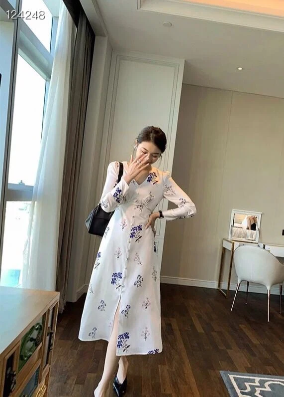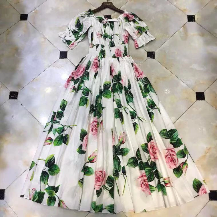 Elegant spring autumn women's dress 2022 casual fashion floral print super long dress fashion hollow out long vestidos Dress Plu