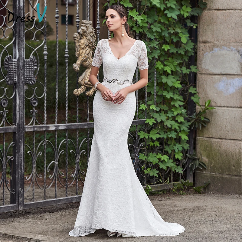 Luxury Crystal Beading Wedding Gowns China Factory price Short Sleeves Sheer Neck Illusion Vintage Mermaid Wedding Dress WX0223