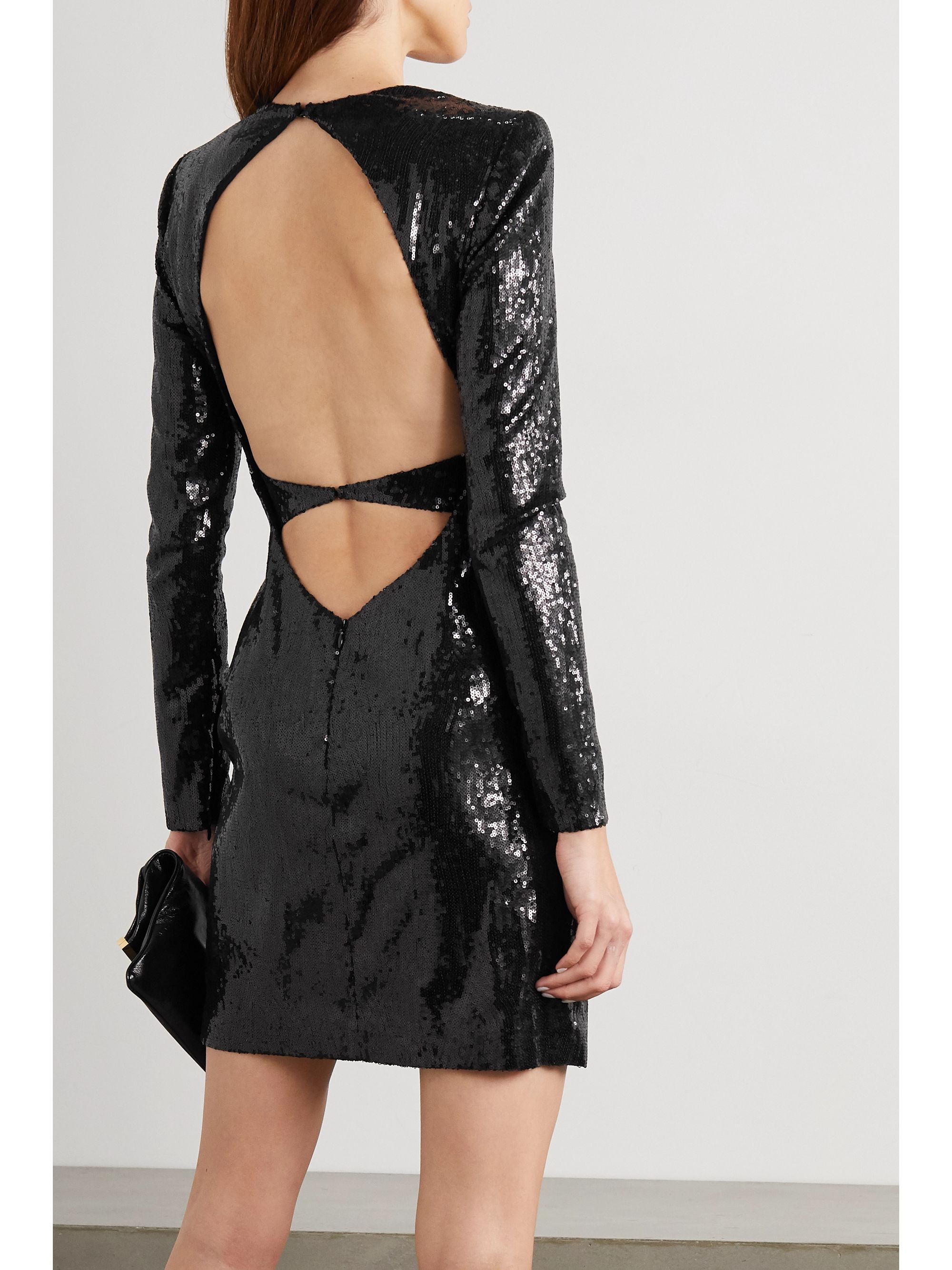 Explore short black dresses with flirty skater silhouettes . Radiate elegance in long sleeve black dresses in velvet or dresses with chic one-shoulder designs . Bring the glamour to your special occasions in long black formal dresses . High slits, plunging necklines, strappy back designs, and fitted silhouettes will give you a sexy vibe .