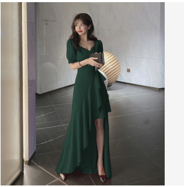 High slit long sleeves and closed-back elegant evening dress available in navy . Mermaid dress : A mermaid dress is a type of dress that you wear to formal events . They fit tight around the bust, waist, and hips before flare out for a flattering look . 3 Mermaid evening dresses that have the most flattering design ever!