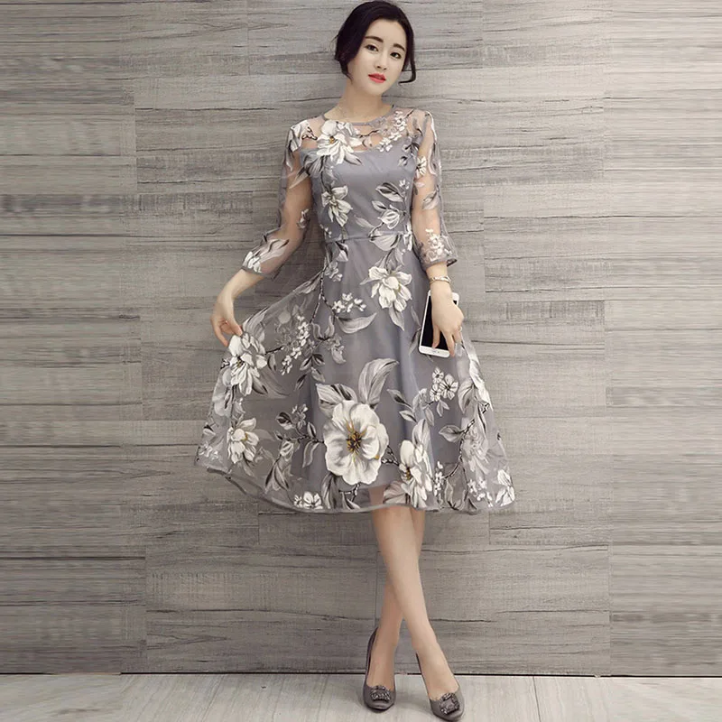 Young Gee Summer Fairy Dress Women Elegant 3D Flower Red Embroidery Mesh Female Lace Party Holiday Long Dresses vestido de mujer