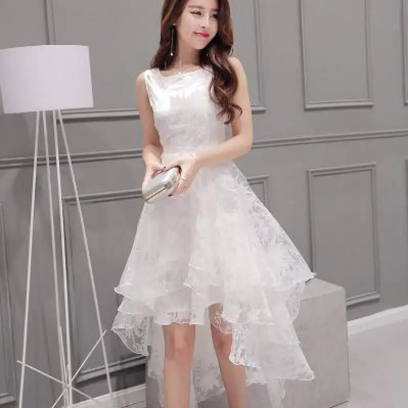 Women Lace Ruffles Dresses Elegant Spring Summer Party High Waist Beading Tassel Tutu Midi Slim Fairy Dress Vestidos