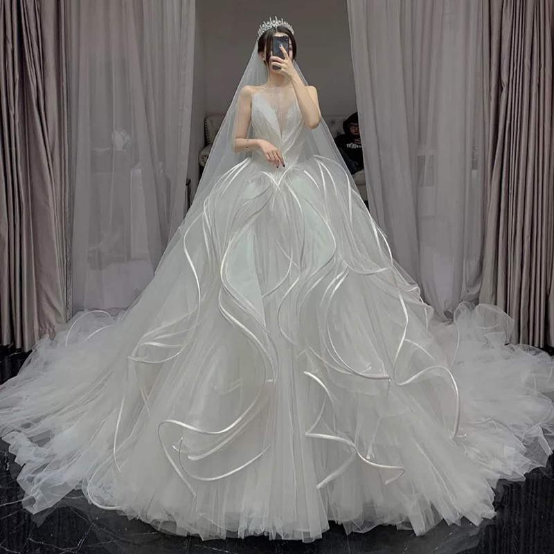 ChuYu 2022 Sexy Spaghetti Straps Beaded Crystals Open Back Sweetheart Pleated Tulle A-line Wedding Dress Formal Occasion New