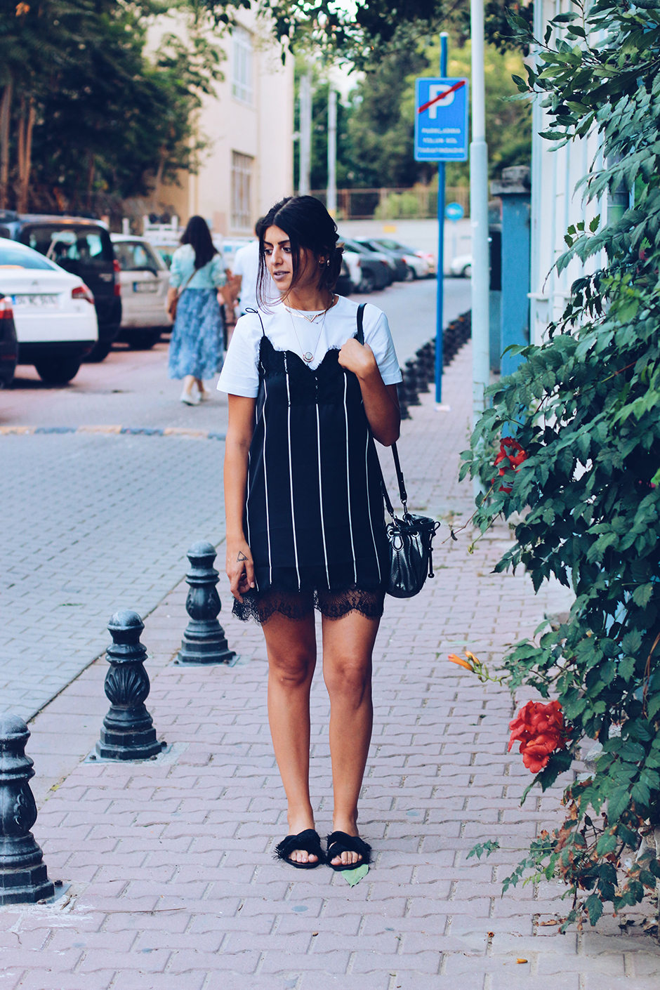 Rails leopard print shirtdress - Made in Blue skinny jeans - Jeffrey Campbell zip bootie - Treasure & Bond woven straw tote - Akola earrings . 5 . Wear over narrow leg pants . An outfit which is easy to put together, stylish and universally-flattering is a shirt dress worn over narrow or straight-leg pants .