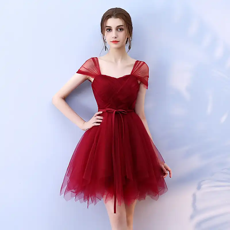 In Stock Vestido De Festa Halter Hollow out Front Chiffon Burgundy Bridesmaid Dresses With Belt Cheap dress for wedding party