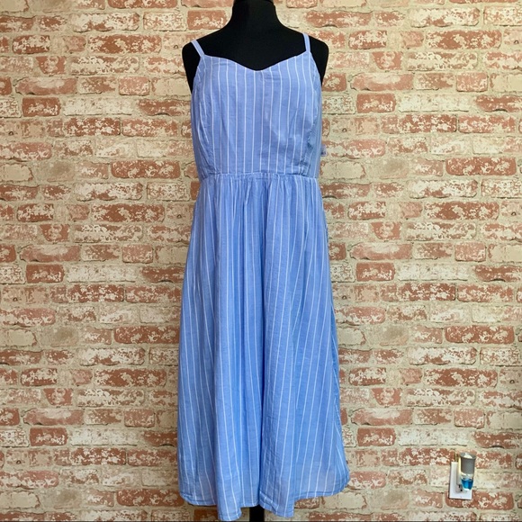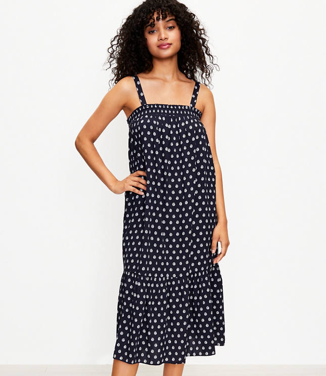 STYLE #567562 Wanderlust glam made as easy and breezy as this flowy, smocked neck midi dress ? Swoon . Square neck and back . Sleeveless . Side slit pockets . β’ Fits loose & swingy β’ Fluid woven β’ Hits at calf β’ 36 3/4" from top back neck to hem, measured from a size 8/M Available in: Blue Fabric & Care β’ 100% Rayon, exclusive of elastic β’ Machine Washable β’ Imported