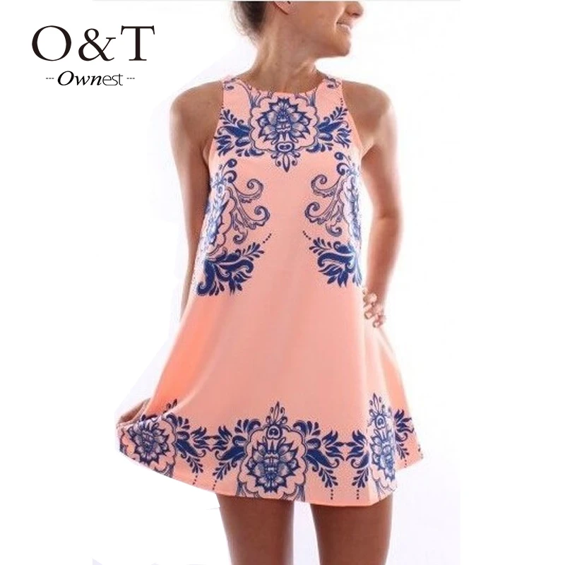 Casual Tank Dress Women Loose Sleeveless Dresses Pockets Beach Dress Bohemian Print Vest Lady O Neck Plus Size Dresses Oversize