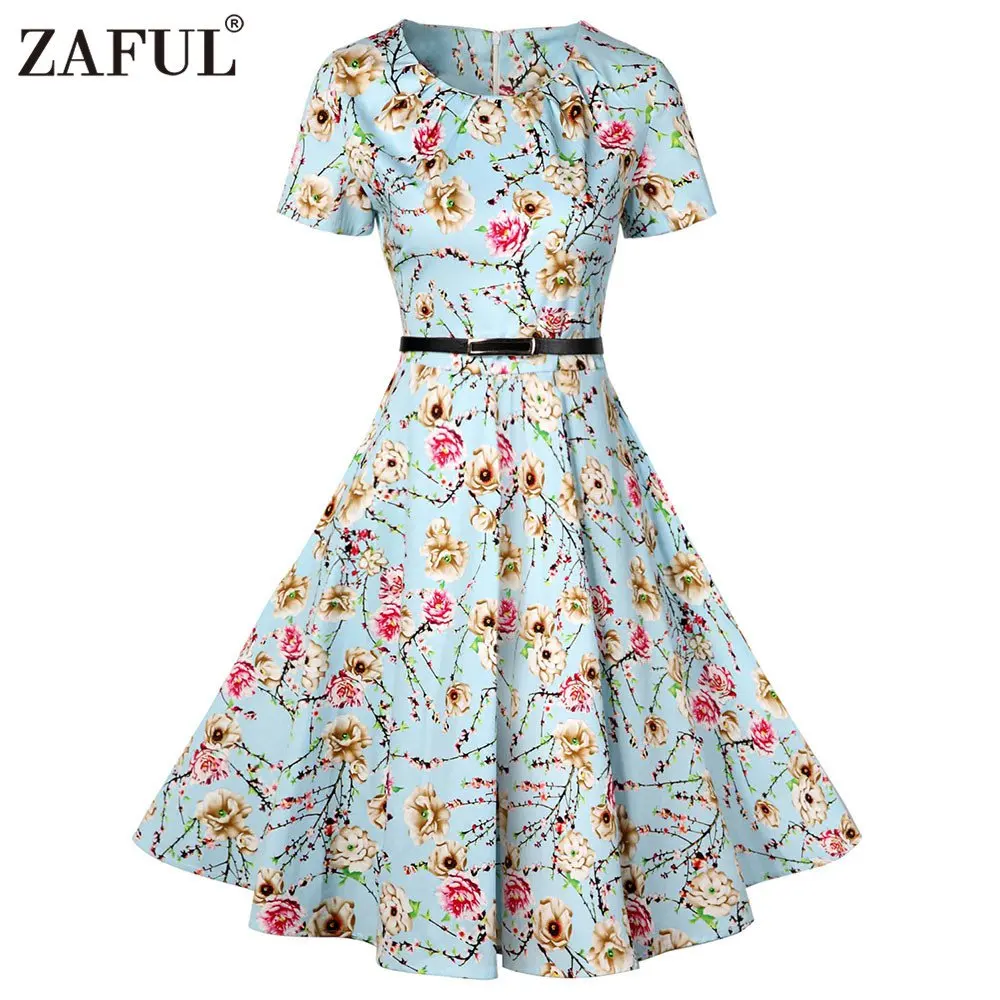 Zevity women vintage flower print pleats a line midi dress elegant lady short sleeve vestido chic casual slim party dress DS4226
