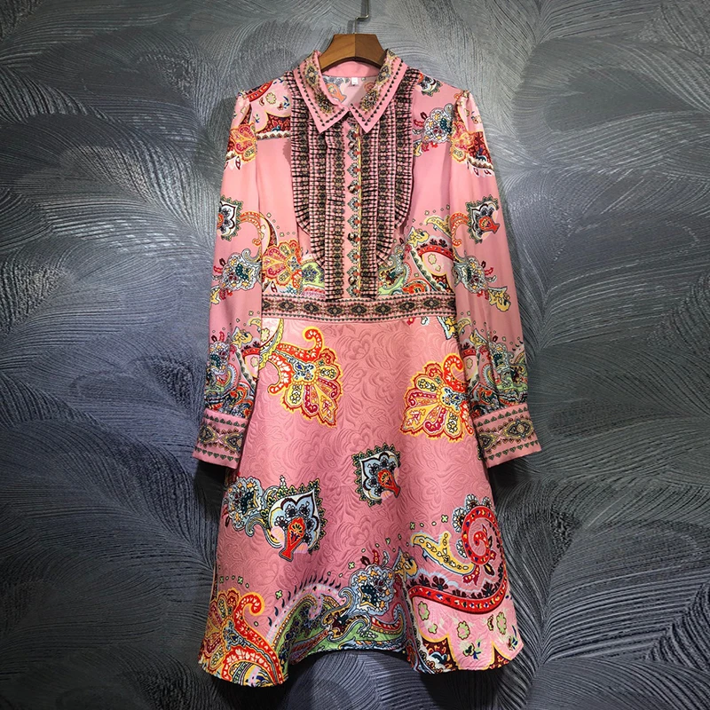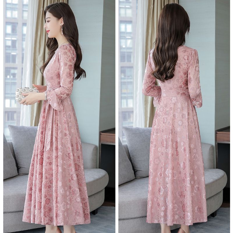 Dress Spring Autumn Women Pink Jacquard