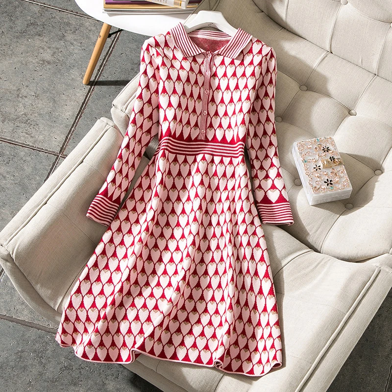 Cheap Dresses, Buy Quality Women's Clothing Directly from China Suppliers:New 2018 spring autumn fashion women cute hearts patterns jacquard knit sweater dress long sleeve a line dresses pink gold color Enjoy Free Shipping Worldwide! Limited Time Sale Easy Return .