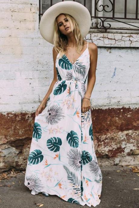 Summer Women Dress Sexy Sleeveless Boho Flower Printing Maxi Dress Casual O Neck Empire Long Robe Ladies Party Dresses Vestidos