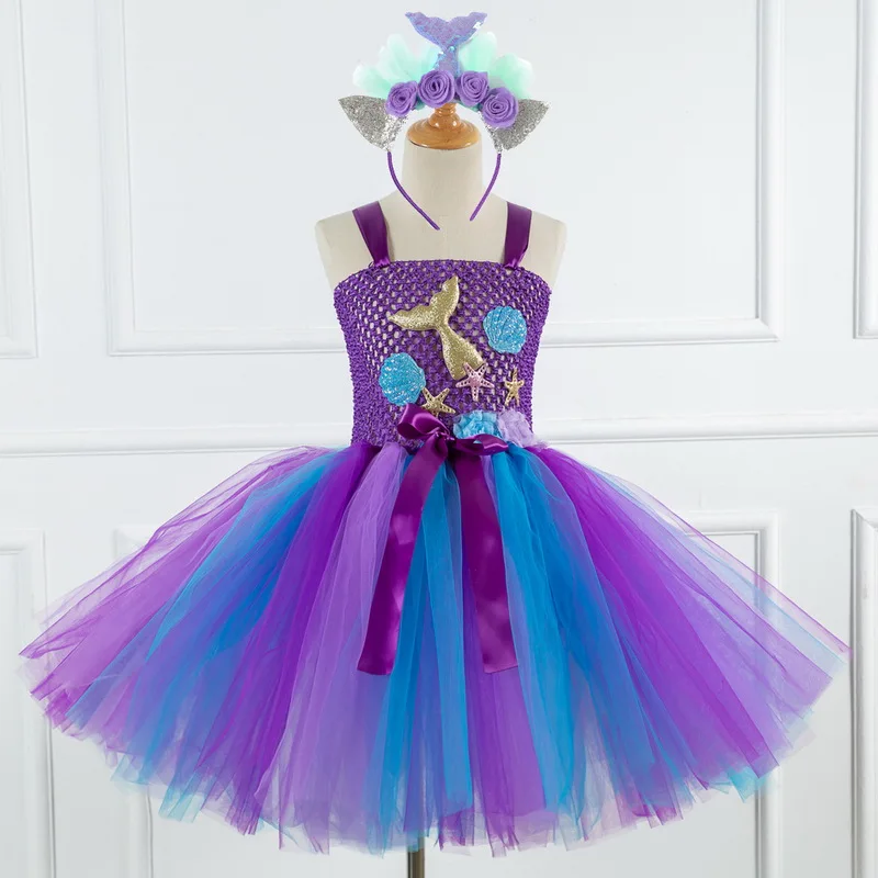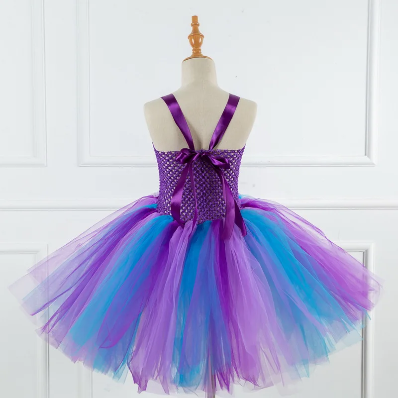 Baby Girls Glitter Princess Tutu Dress Kids Crochet Tulle Elsa Dress Ball Gown with Hairbow Children Birthday Party Dresses