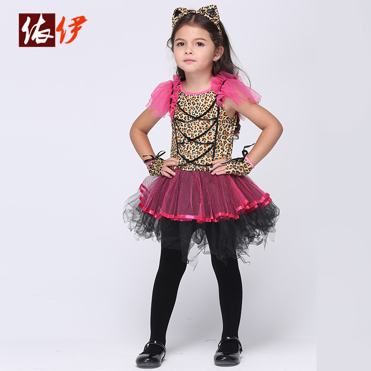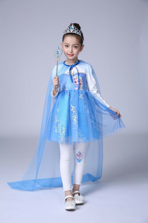 Children's Dress For Girl Cartoon Printed Satin Cloth Show Christmas Dance Show Outfits For 3-9 Year Olds Girls Clothing vestido