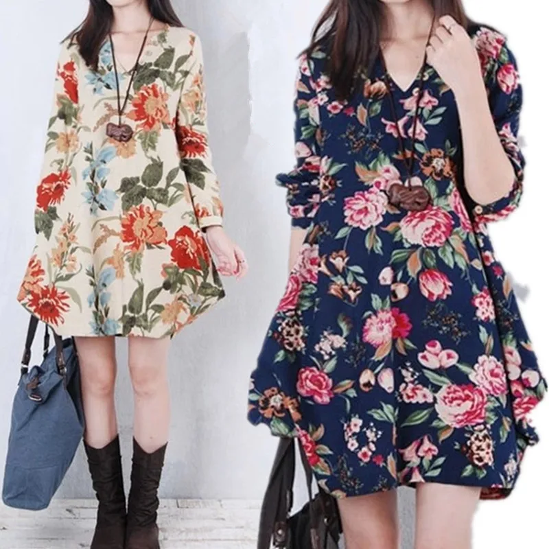 Floral Print Boho Beach Dress Tunic Maxi Dress Women Evening Party Dress Sundress Vestidos de festa XXXL