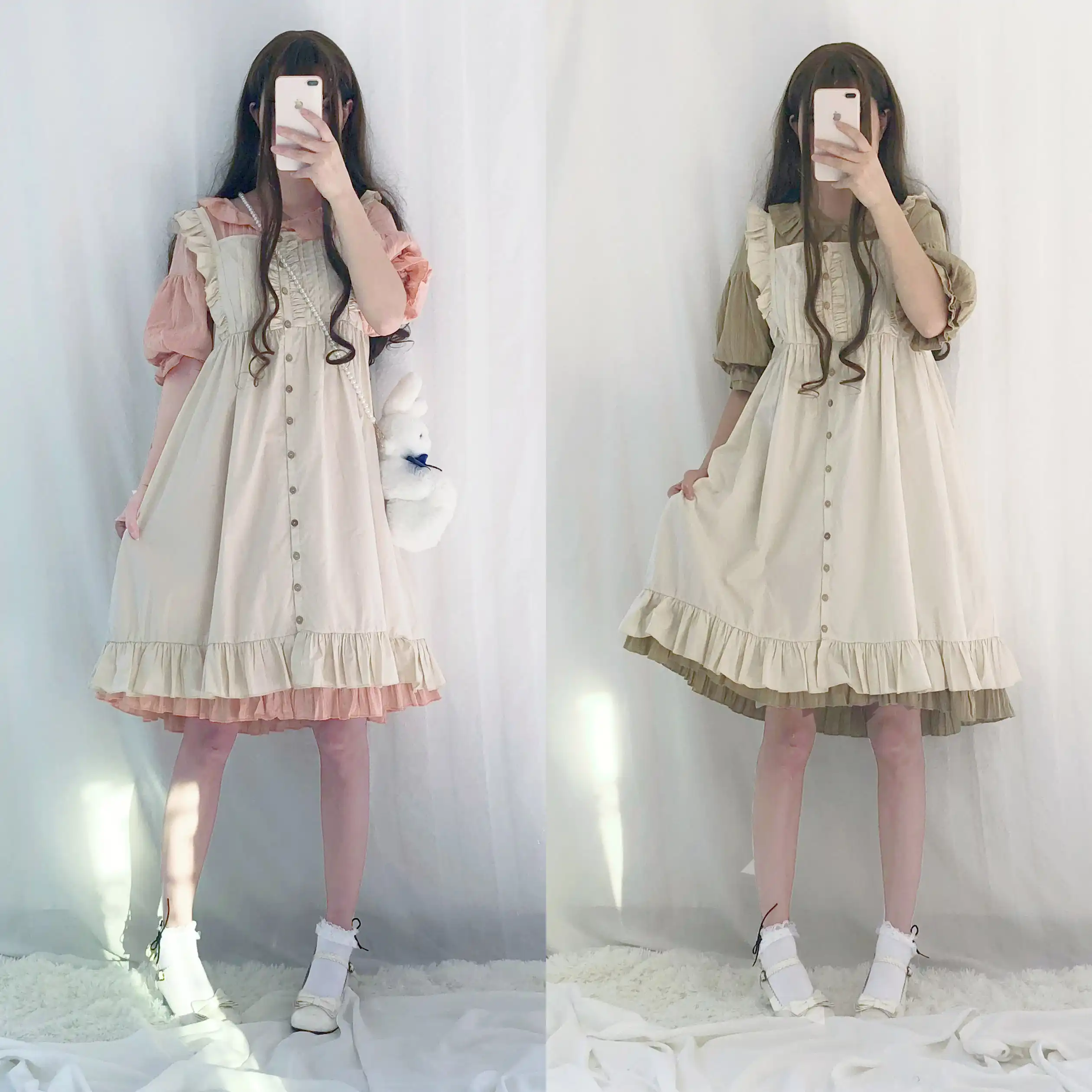 Spring Autumn Women Dress Peter Pan Collar White Bag Princess Party Dress Japanese Lolita Style Cute Kawaii Long Ruffles Dresses