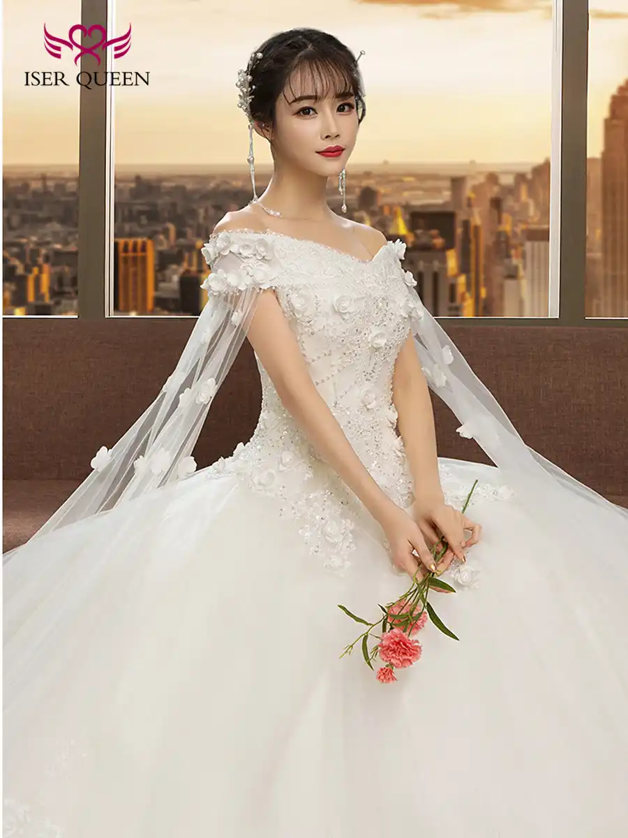 WUZHIYI White A Line Wedding Dresses Boho Lace Appliques Pearls Princess Bridal Gowns Custom Made Robe De Marriage Bride 2022