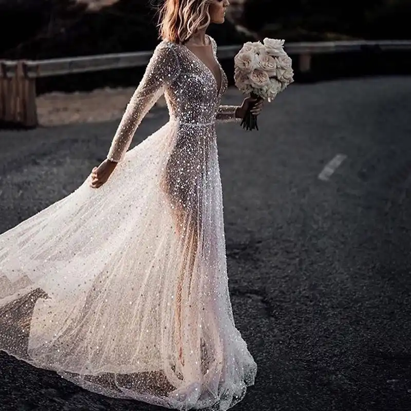 V Gets Bohemia Wedding Dress Sex Appeal Narrow Beach Skirt