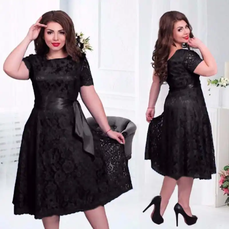 New Brand Bandage Short Sleeve Dresses Women's Cotton Plus Size Dress Sexy Party Off Shoulder O Neck Midi Dress Large Size S-6XL