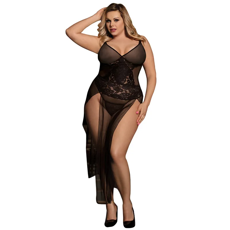 Sexy Hot Plus Size Hollow Out Bodystocking Open Crotch Crotchless Sleeveless Lingerie Underwear For Sex Transparent Mesh Dress