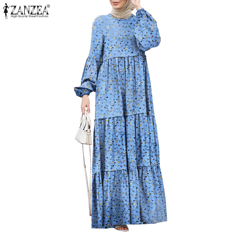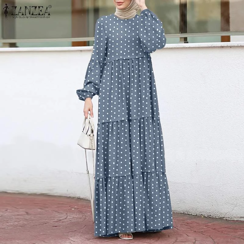 ZANZEA Women Polka Dot Maxi Dresses 2022 Spring Ruffle Long Vestidos Casual Puff Sleeve Sundress Female Loose Robe