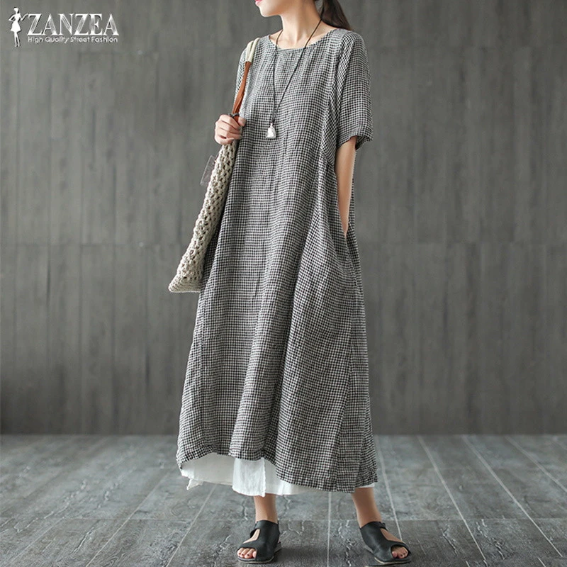 ZANZEA Women 3/4 Sleeve Casual Long Maxi Dress Oversize Kaftan Shirt Dress Plus . $18 .59 . Was: $20 .21 . $3 .99 shipping .