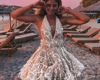 Sexy Plunging V-neck White Tulle Informal Bridal Dress . $249 . These dresses is practically magic! Glittery, sequin and shimmering wedding gowns, a collection of beautifully embellished sparkle wedding dresses adorned with beading, paillettes and sequins . Shop your sparkly glitter wedding dress 2021 online from Victoria's Queen today .