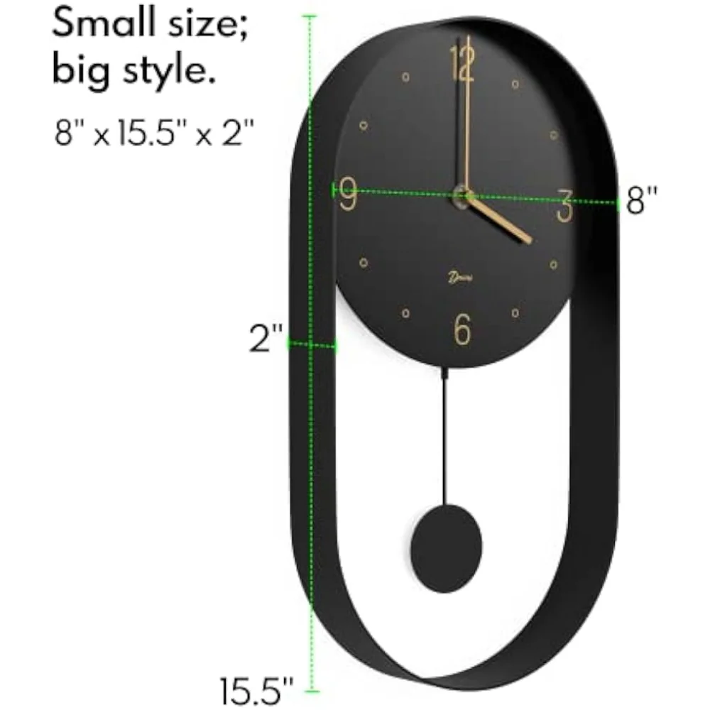 Driini Modern Pendulum Wall Clock - Decorative and Unique Metal Frame, with 8 Inch Face - Contemporary, Minimalist Design - Купить с бесплатной доставкой