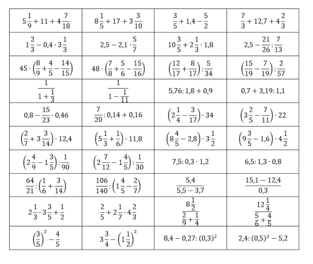 Дроби 5 класс примеры распечатать