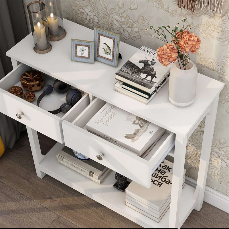 Drop Shipping Available Wooden White Console Table with Storage Shelf and Two Drawers Stable Construction Storage Rack - Купить с бесплатной доставкой