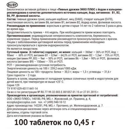 Дрожжи пивные с Йодом и Кальцием таблетки 100 шт ., упак . Основное . Инструкция . Написать отзыв . Bнешний вид товара может отличаться от изображённого . Арт . 233813 . Производитель: Экко Плюс, Россия . Бренд: Дрожжи пивные . Срок годности: Длинный срок .
