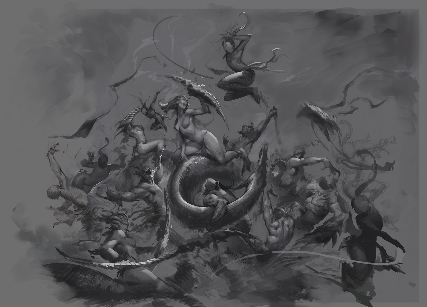 Пока безнравственность пронизывала каждый аспект общества эльдар, культы невоздержанности искали новые буйные ощущения. Вскоре по улицам городов эльдар потекли реки крови. Утончённая архитектура их дворцов превратилась в фон для поля боя, когда эльдар стали охотиться друг на друга, наслаждаясь жесточайшими преступлениями. Их сумасшествие и грязные увлечения изливались в варп, пока не достигли критической массы. С предвещающим конец света воплем, что вырвал сердце империи, родился новый бог — Слаанеш, Темный Князь Невоздержанности. Крики новорожденного Слаанеш оказались настолько мощными, что погубили бесчисленные миллиарды душ психической ударной волной, которая прошла по Галактике. В это мгновение большая часть расы эльдар была уничтожена, поглощена катаклизмом ужаса и боли. Эпицентр их империи затянуло в варп, оставив на том месте зияющую воронку из чистого Хаоса. Слаанеш с жадностью пожирал отчаяние эльдар. Необоримый в своём могуществе новорождённый Властелин Удовольствий поглотил древние божества старой эльдарской империи и разбросал их останки по уголкам варпа.