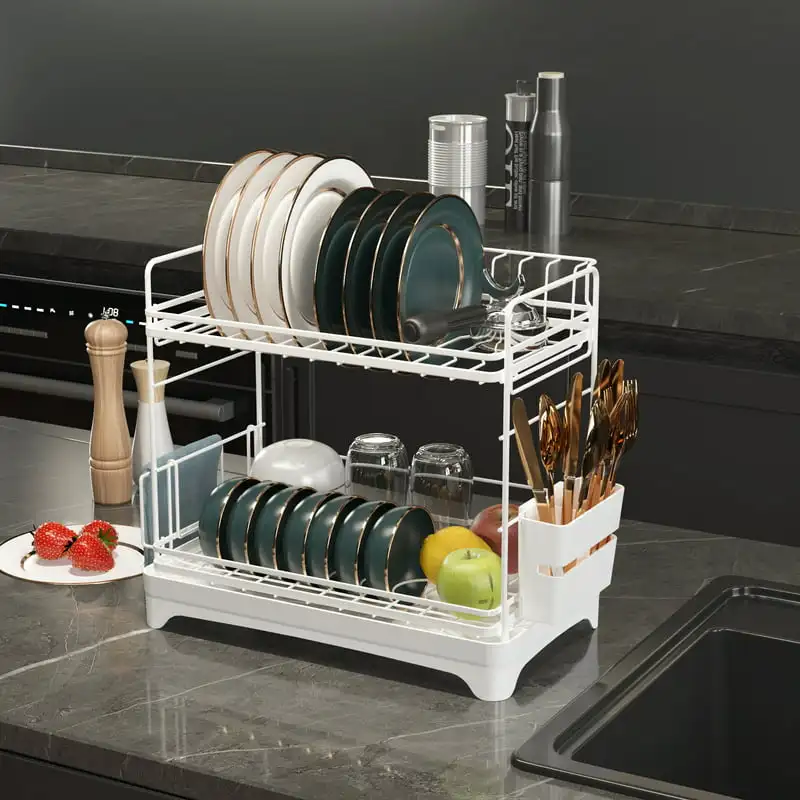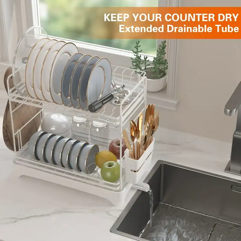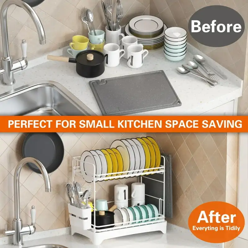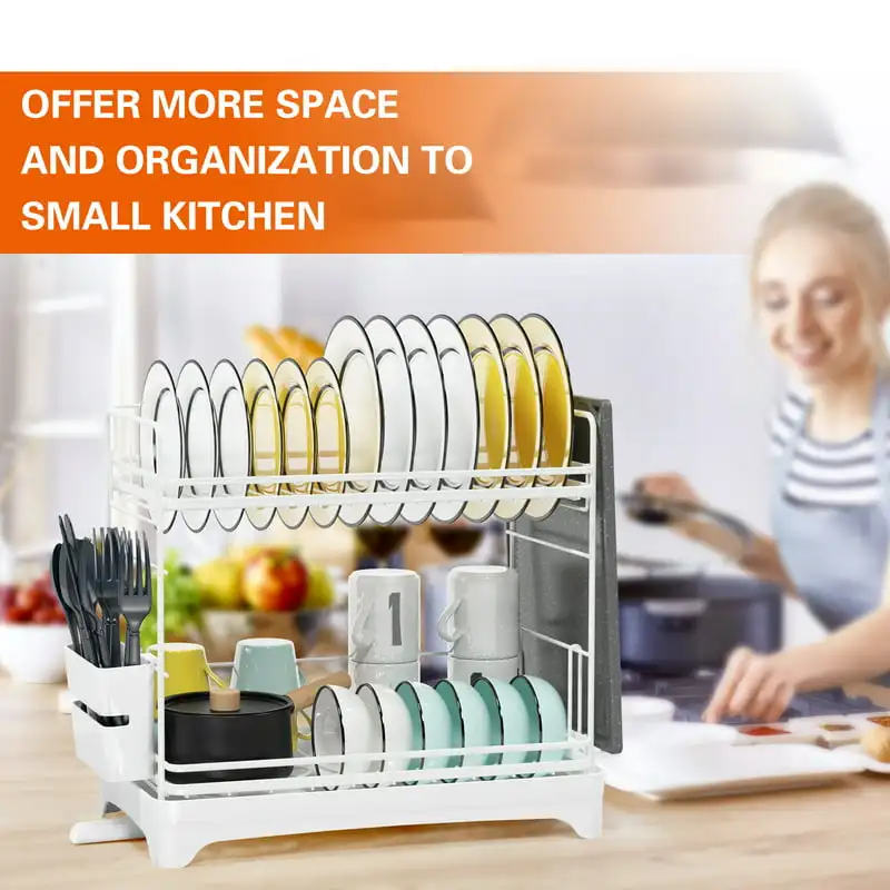 Drying Rack, 2-Tier Dish Drying Rack with Water Tray, Utensil Holder, Cutting Board Holder for Small Space Kitchen Counter or Si - Купить с бесплатной доставкой