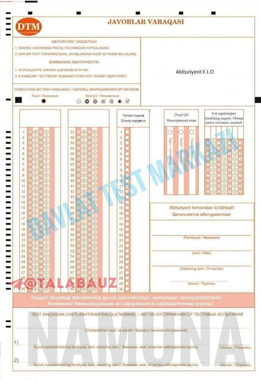 Dtm javoblari