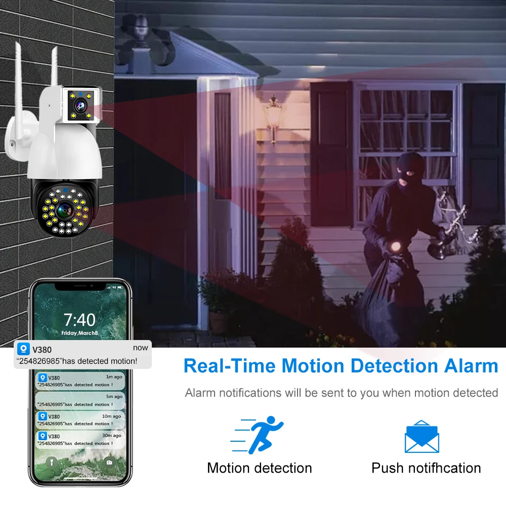 Dual Lens 4MP V380 Wireless Speed WIFI Camera Outdoor Pan Tilt Home Security Two Way Talk Infrared WIFI Camera Motion Detection - Купить с бесплатной доставкой