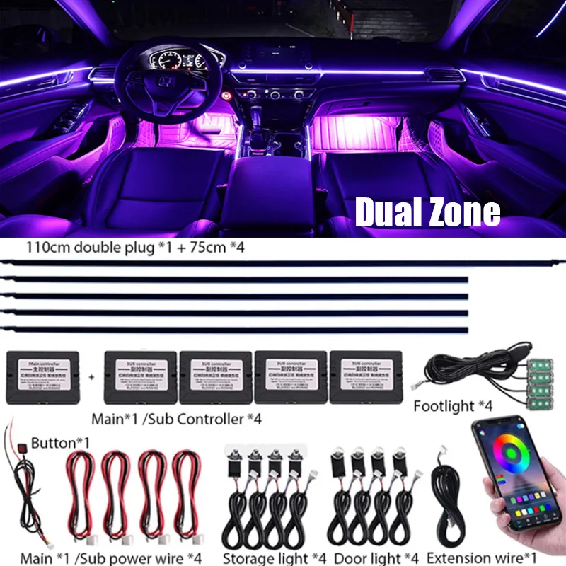 VajrbLdqEyЗдесь вы сможете купить Dual Zone 18/14 In 1 LED Decoration Lamp Kit Universal 64 Color RBG APP Acrylic Strips Led Control Interior Car Atmosphere Light с бесплатной доставкой до вашего почтового отделения.