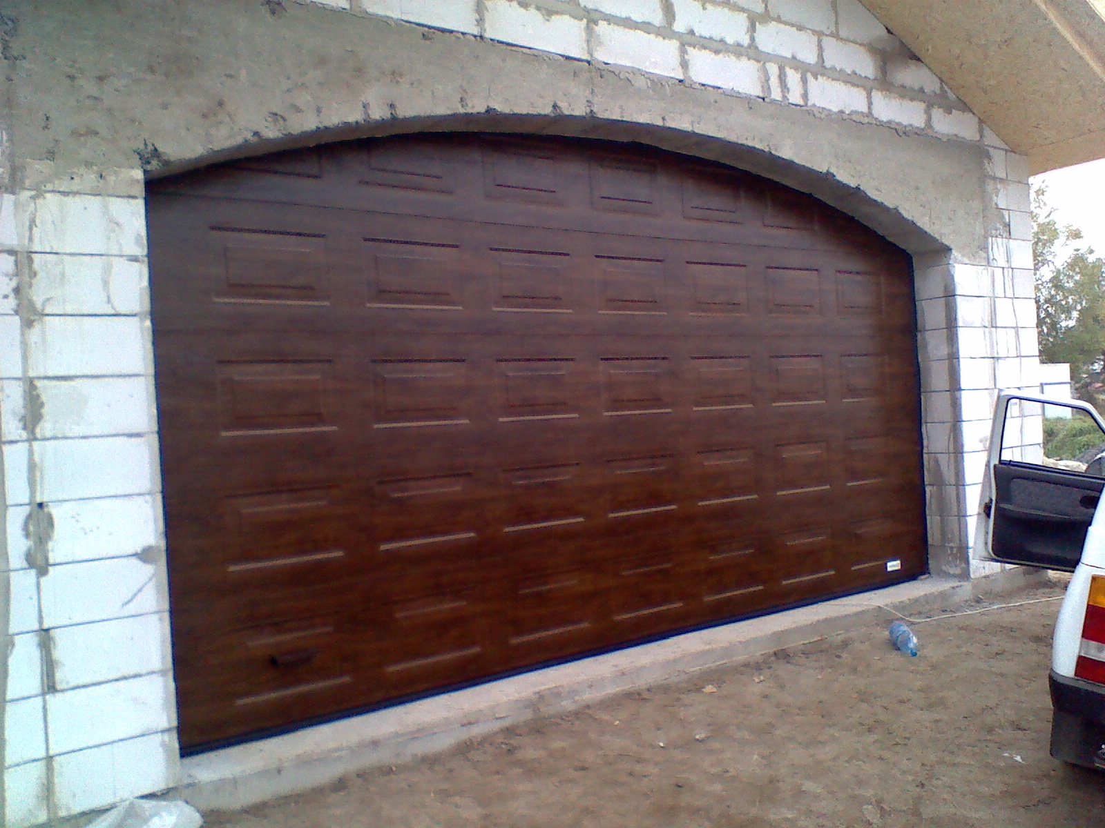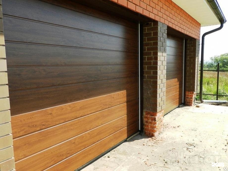 Ворота Алютех Темный Дуб Фото S Гофр 102 фотографий