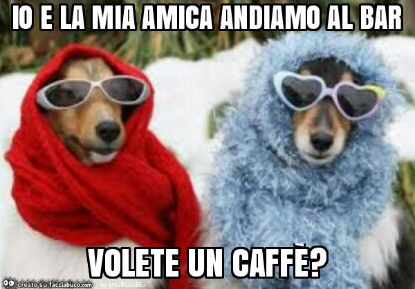 eravamo due amici al bar Showing 1-22 of 22 messages . eravamo due amici al bar: Pedro Peraria: 5/21/10 2:41 AM: Io e il mio amico Pietro andiamo, tutti i pomeriggi dal luned al venerdi, al bar a prenere un caff . Andiamo li solitamente dalle 18 alle 19 . Se arrivo prima io lo aspetto, do