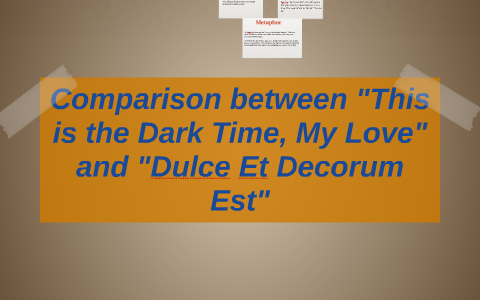 Dulce et Decorum Est In Wilfred Owen's poem " Dulce et Decorum Est " the speaker's argument against whether there is true honor in dieing for ones country in World War I contradicts the old Latin saying, Dulce et Decorum Est , which translated means, "it is sweet and honorable to die for the fatherland"; which is exemplified through Owen's use of title, diction, metaphor and simile . . .