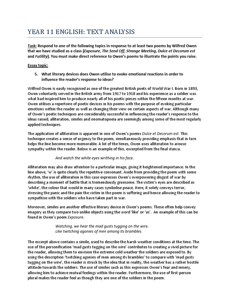Dulce et Decorum Est Essay - 1618 Words | Bartleby