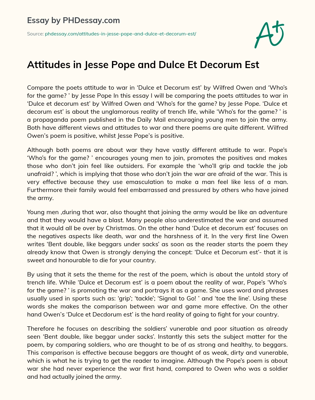 Dulce et Decorum Est - PHDessay .com