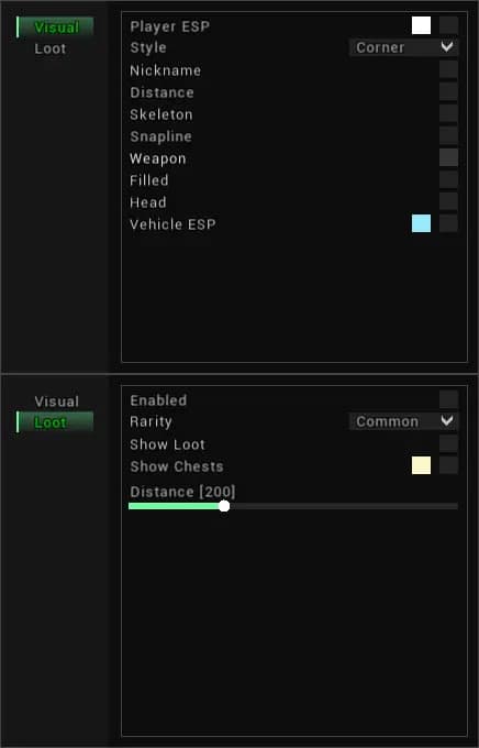 - Distance settings / Настройки дистанции для отображения лута.