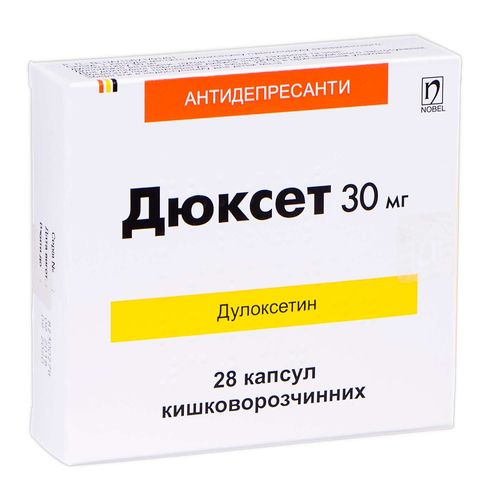 Состав и форма выпуска . капсулы твердые, кишечно-растворимые 30 мг блистер, № 28 . капсулы твердые, кишечно-растворимые 60 мг блистер, № 28 . Цены в аптеках . Можно оплатить лекарства картой підтримка . Классификация . Лекарственные средства . N06A X21 Дулоксетин . Активное вещество .