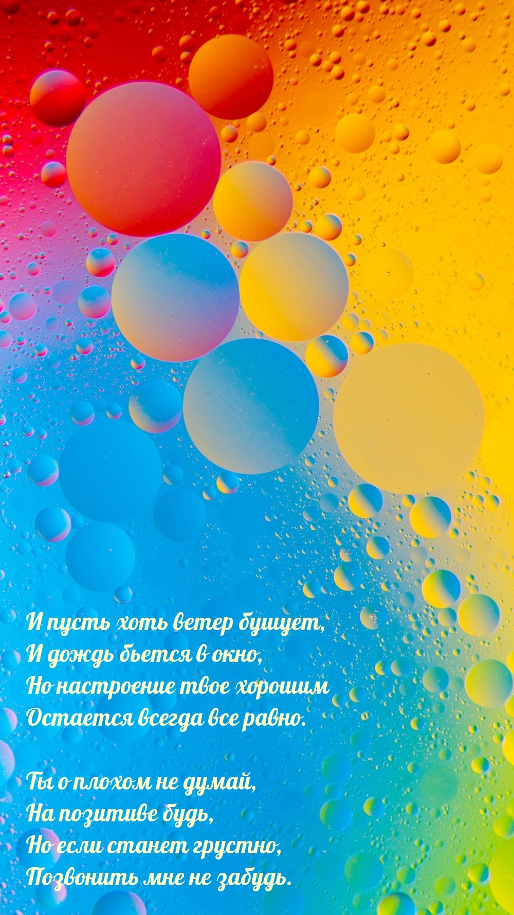 О работе ты не думай, Полноценно отдыхай, Выспись для начала сладко, Вечерами зажигай . Наберись побольше силы, Чтоб хватило на неделю, Чтобы было вдохновение И душа от счастья пела .