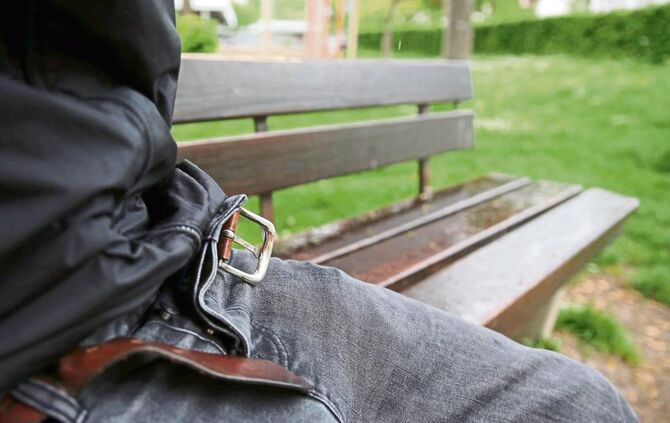 Blondine warte an der Haltestelle auf Stecher