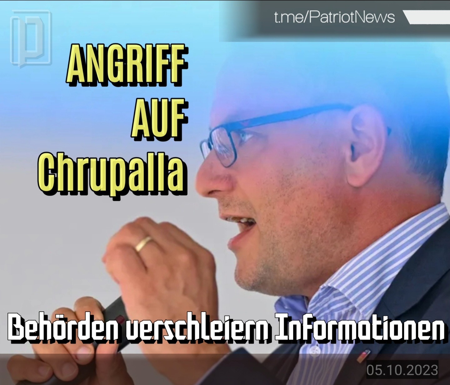 Die Staatsanwaltschaft Ingolstadt hat nach dem Angriff auf den Vorsitzenden der AfD Chrupalla auf einer Wahlkampfveranstaltung am 04.10.2023 ein "Ermittlungsverfahren gegen Unbekannt" eingeleitet, nachdem die Bayerische Polizei die beiden Hauptverdächtigen unverzüglich laufen liess.