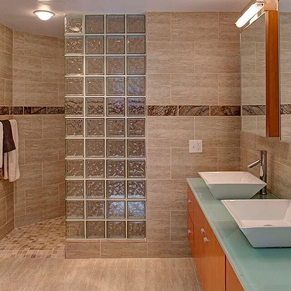 Кабинка душа со стеклоблоком . Душевые кабины из стеклянных блоков . Стеклянные блоки в интерьере ванной . Душевая кабина из стеклянных блоков . Стекло блок перегородки душа стеклоблоки . Душевые перегородки из стеклоблоков .