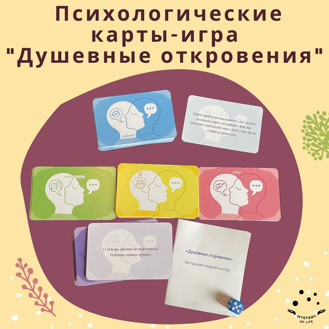 ☝️Итак, этот набор карт поможет вам в любой компании быстрее и глубже познакомиться, снять психологические барьеры в общении. А также освободить душу, через терапевтический эффект проговаривания важных вещей в доверительной обстановке.