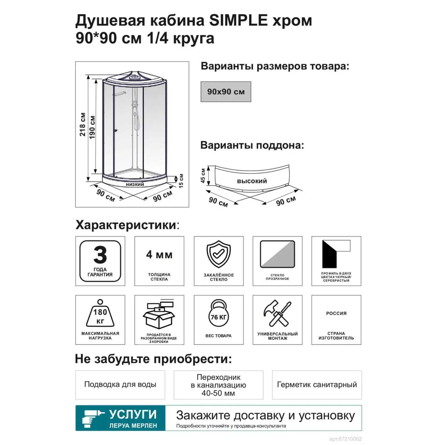 Душевой уголок domani spa cube