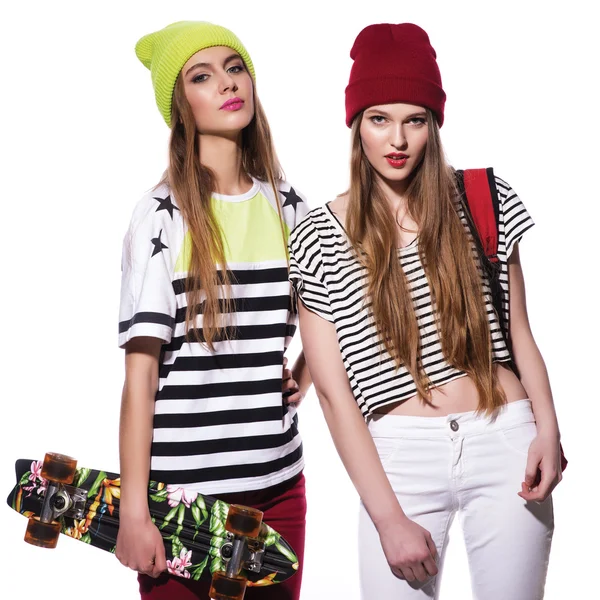 Две девушки подружки: cтоковые фото, картинки, изображения по лицензии роялти- . . . Две молодые красивые блондинки хипстер девушки в летний день, . . .
